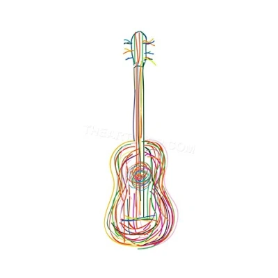 Wee Blue Coo Music Painting Stylised Acoustic Guitar Colourful Wall Art Print