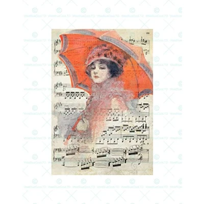 Wee Blue Coo Music Sheet Woman Red Umbrella Dress Wall Art Print