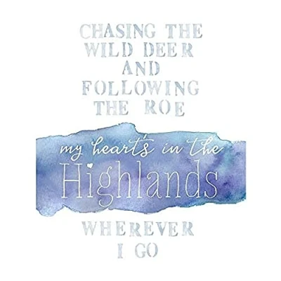 Wee Blue Coo My Heart's Highlands Scotland Burns Song Lyrics Watercolour Canvas Art Print