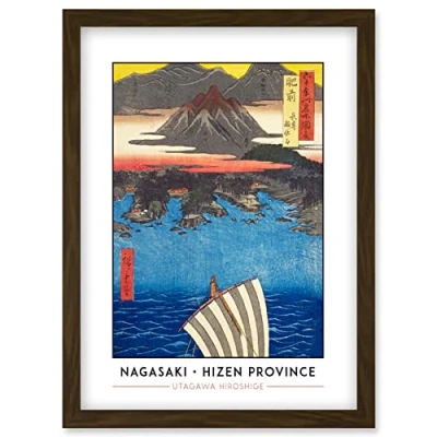 Wee Blue Coo Nagasaki, Mount Inasa Hizen Province Utagawa Hiroshige Japanese Woodblock Classic Collection Artwork Framed Wall Art Print A4
