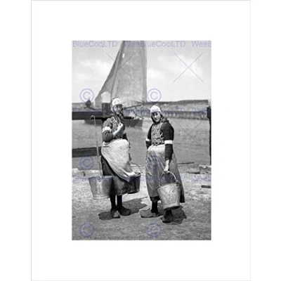 Wee Blue Coo Native Girls Marken Island Holland 1890 1900 Old BW Wall Art Print