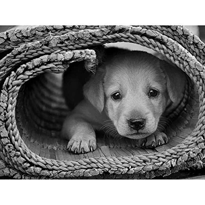 Wee Blue Coo Nature Animal Dog Puppy Cute Black White Art Print Poster Wall Decor 12X16 Inch