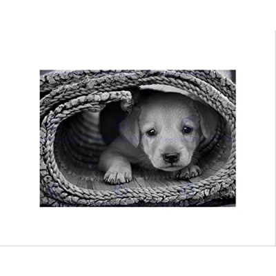 Wee Blue Coo Nature Animal Dog Puppy Cute Black White Home Wall Art Print