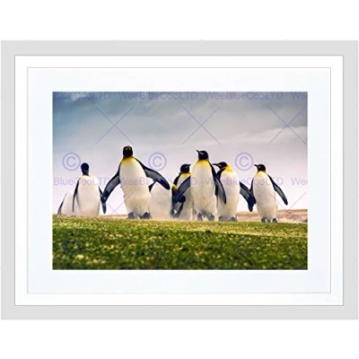 Wee Blue Coo Nature Animal Group King Penguins Falkland Framed Wall Art Print