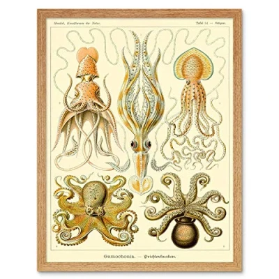 Wee Blue Coo Nature Ernst Haeckel Octopus Biology Germany Vintage Art Print Framed Poster Wall Decor 12X16 Inch