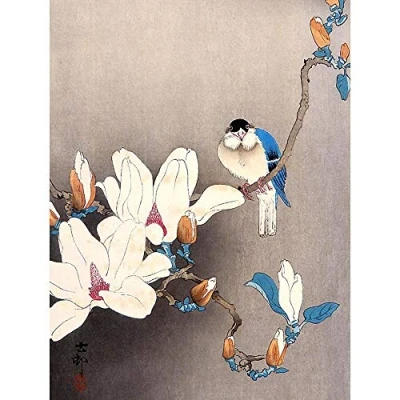 Wee Blue Coo Nature Japan Ohara Koson Bird Flower Art Print Poster Wall Decor 12X16 Inch