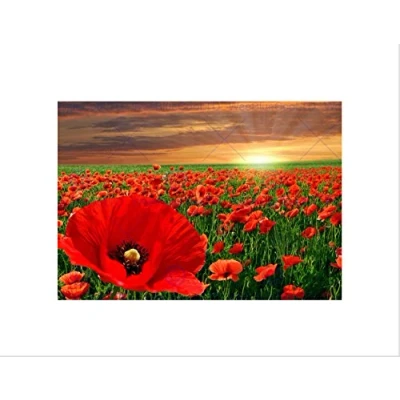 Wee Blue Coo NATURE LANDSCAPE POPPY FIELD SUN RISE RED FLOWER BEAUTIFUL FRAMED PRINT B12X4071