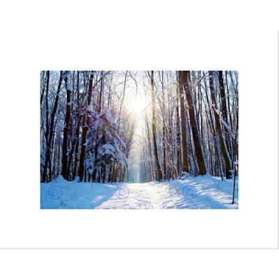 Wee Blue Coo NATURE LANDSCAPE SNOW WINTER FOREST TREE SUN BLACK FRAMED ART PRINT B12X4075
