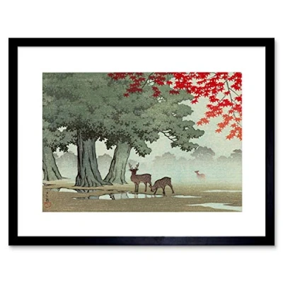 Wee Blue Coo Nature Landscape Tree Deer Japan Kawase Hasui Framed Wall Art Print