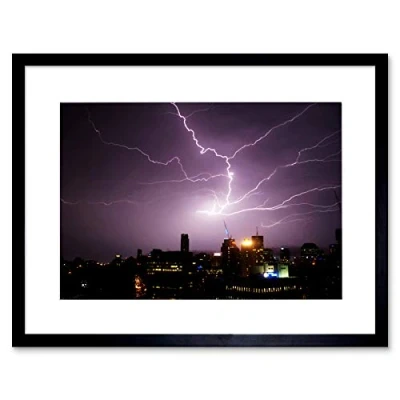 Wee Blue Coo NATURE LIGHTNING ELECTRIC STORM BRISBANE AUSTRALIA FRAMED ART PRINT B12X4083