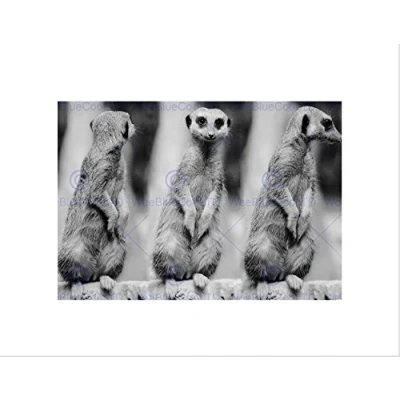 Wee Blue Coo Nature Meerkat Black White Cute Wall Art Print