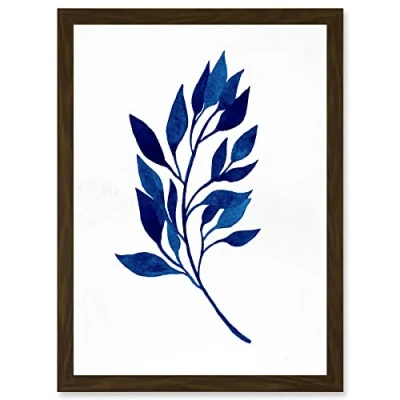 Wee Blue Coo Navy Watercolour Leaves Artwork Framed Wall Art Print A4