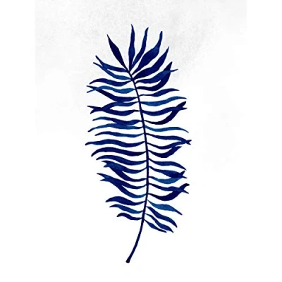 Wee Blue Coo Navy Watercolour Palm Frond Premium Wall Art Canvas Print 18X24 Inch