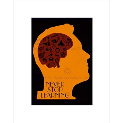 Wee Blue Coo Never Stop Learning Quote Typography Motivation Orange Wall Art Print