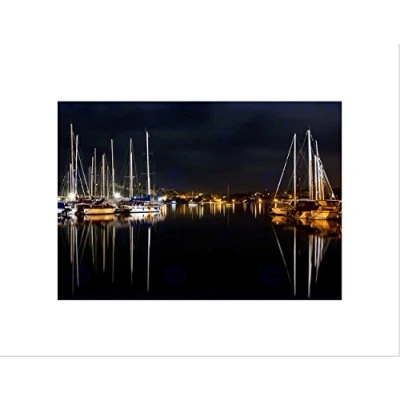Wee Blue Coo Night Harbor Boats Sail Reflection Art Picture Wall Print
