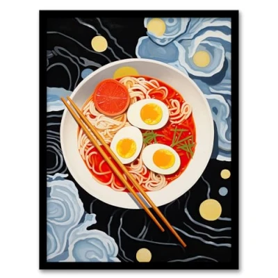 Wee Blue Coo Noodles And Doodles Ramen Food Kitchen Artwork Framed Wall Art Print A4