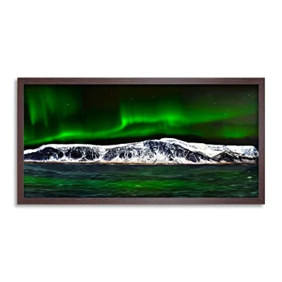 Wee Blue Coo Northern Lights Aurora Borealis Green Long Panel Framed Wall Art Print