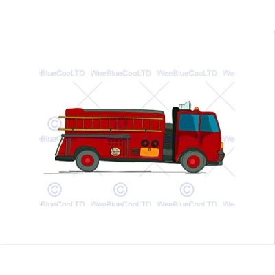 Wee Blue Coo Nursery American Fire Truck Red Yellow Firemen Kids Bedroom Art Wall Print