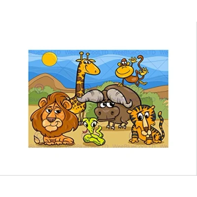 Wee Blue Coo Nursery Animals Lion Giraffe Monkey Kids Bedroom Wall Art Print