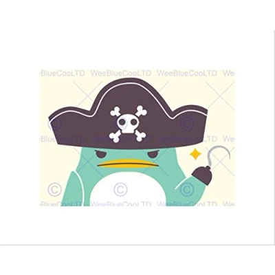 Wee Blue Coo Nursery Captain Pirate Hook Bird Jolly Roger Kids Bedroom Wall Art Print