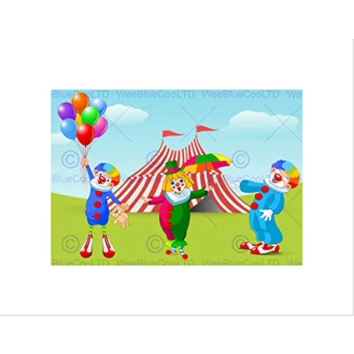 Wee Blue Coo Nursery Circus Clowns Funny Balloons Tent Kids Bedroom Wall Art Print