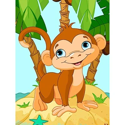 Wee Blue Coo Nursery Desert Island Brown Monkey Palm Trees Ocean Kids Bedroom Art Print Poster Wall Decor 12X16 Inch