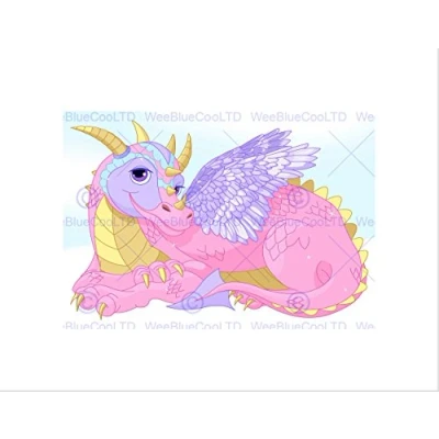 Wee Blue Coo Nursery Dragon Pink Wings Horns Smile Kids Bedroom Wall Art Print