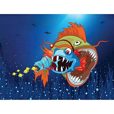 Wee Blue Coo Nursery Fish Food Chain Underwater Teeth Bubbles Kids Bedroom Art Print Poster Wall Decor 12X16 Inch