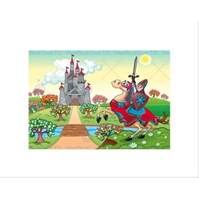 Wee Blue Coo Nursery Medieval Fairy Tale Castle Knight Kids Bedroom Wall Art Print