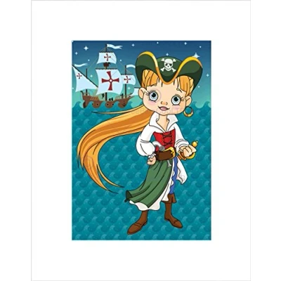Wee Blue Coo Nursery Pirate Girl Ocean Ship Sails Jolly Roger Kids Wall Art Print