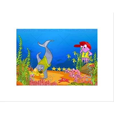 Wee Blue Coo Nursery Seascape Dolphin Squid Starfish Kids Bedroom Wall Art Print