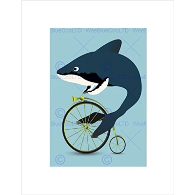 Wee Blue Coo NURSERY SHARK PENNY FARTHING FUNNY FISH KIDS BEDROOM FRAMED ART PRINT B12X13400