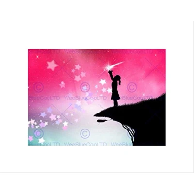 Wee Blue Coo Nursery Silhouette Pink Sky Stars Girl Kids Bedroom Wall Art Print