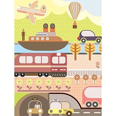 Wee Blue Coo Nursery Transport Bus Train Car Ship Kids Bedroom Art Print Poster Wall Decor 12X16 Inch