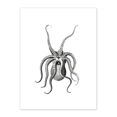 Wee Blue Coo Octopus Upside Down Illustration Art Print Canvas Premium Wall Decor Poster