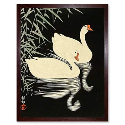 Wee Blue Coo Ohara Koson Swans Art Print Framed Poster Wall Decor 12x16 inch
