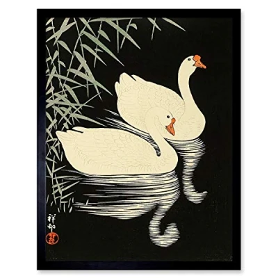 Wee Blue Coo Ohara Koson Swans Art Print Framed Poster Wall Decor 12x16 inch