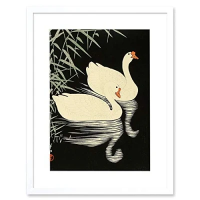 Wee Blue Coo Ohara Koson Swans Artwork Framed Wall Art Print 12X16 Inch