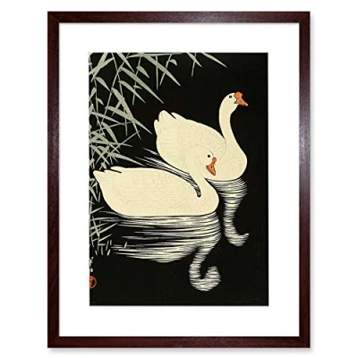 Wee Blue Coo Ohara Koson Swans Artwork Framed Wall Art Print 12X16 Inch