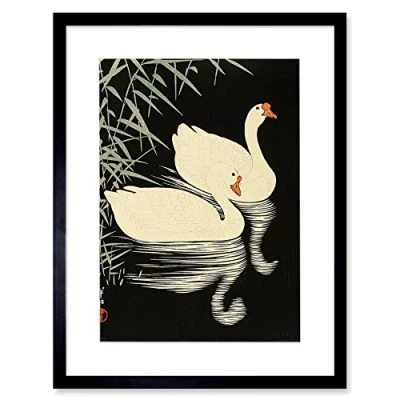 Wee Blue Coo Ohara Koson Swans Artwork Framed Wall Art Print 12X16 Inch