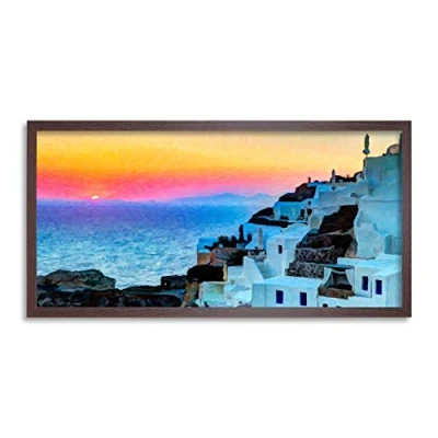 Wee Blue Coo Oia Village Santorini Greece Long Panel Framed Wall Art Print