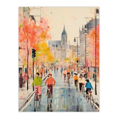 Wee Blue Coo Old Amsterdam City Cyclist Watercolour Large Wall Art Poster Print Thick Paper 18X24 Inch