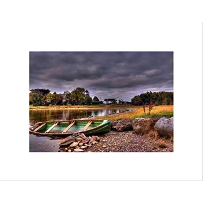 Wee Blue Coo OLD BOAT LAKESIDE MOODY SKY BLACK FRAME FRAMED ART PRINT PICTURE MOUNT B12X9049