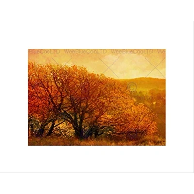 Wee Blue Coo Orange Landscape Autumn Tree Black Frame Framed Art Print Picture Mount B12X9652