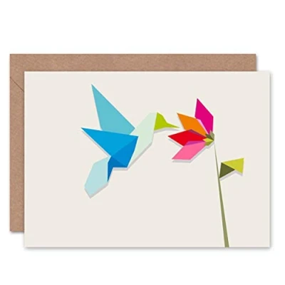 Wee Blue Coo ORIGAMI HUMMINGBIRD FLOWER BLANK GREETINGS BIRTHDAY CARD ART
