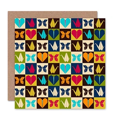 Wee Blue Coo ORIGAMI SWAN HEART BUTTERFLY COLOUR BLANK GREETINGS BIRTHDAY CARD ART