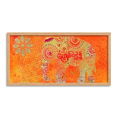 Wee Blue Coo Ornate Decorative Elephant Long Panel Framed Wall Art Print