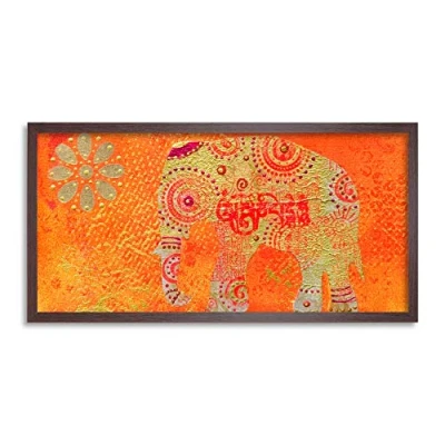 Wee Blue Coo Ornate Decorative Elephant Long Panel Framed Wall Art Print