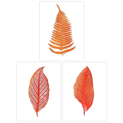 Wee Blue Coo Pack of 3 A4 Elegant Fern Frond Plant Tree Bright Orange Leaf Detailed Foliage Botanical Unframed Wall Art Living Room Prints Set