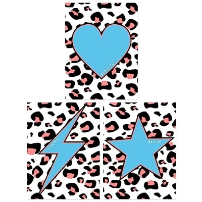 Wee Blue Coo Pack of 3 Beautiful Strong Bright Heart Lightning Star on Pink Leopard Pattern Unframed Wall Art Living Room Prints Set